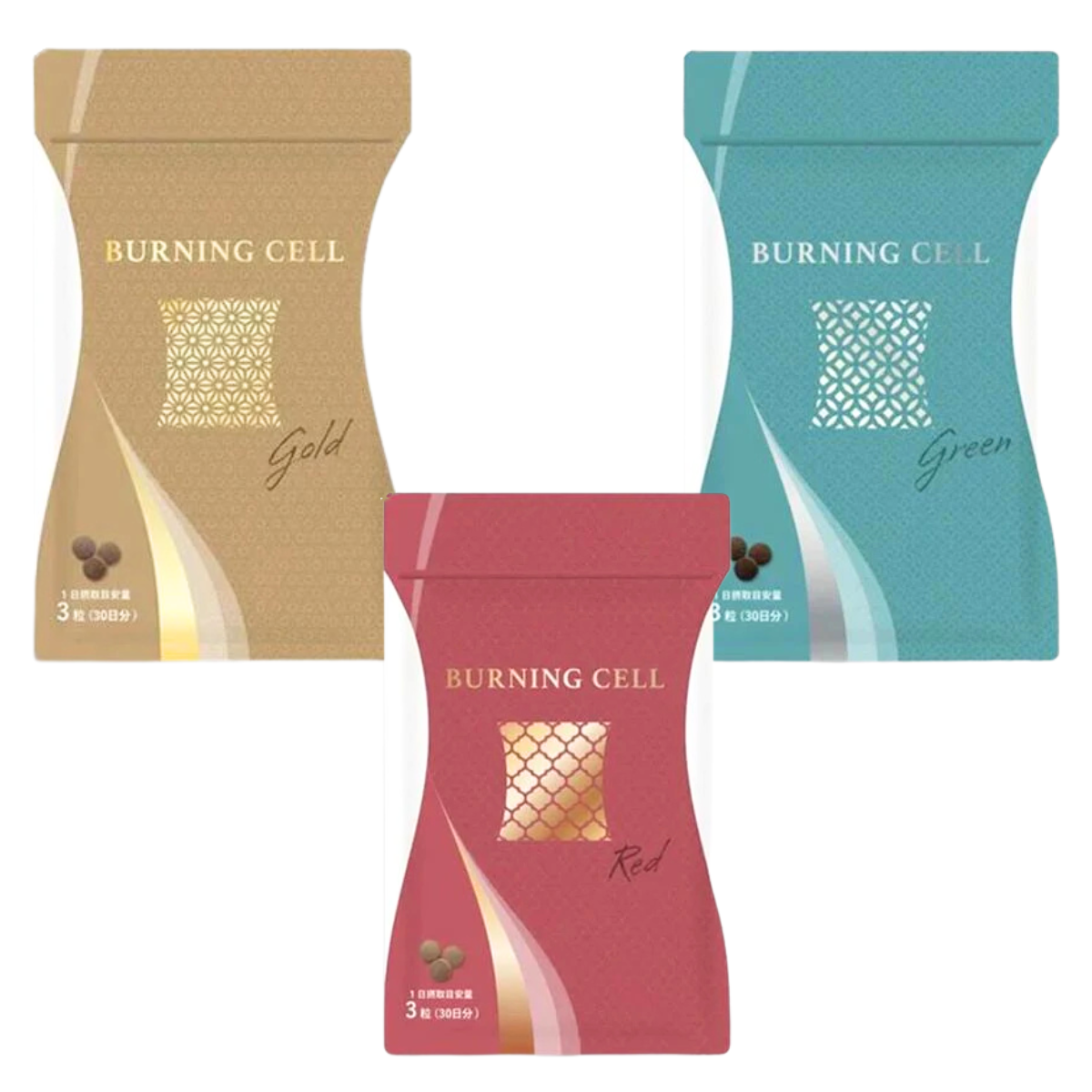 人気のバーニングセルサプリが全部で5個入り!特に人気の高いGOLDとGREENを2個ずつ、REDを1つ、セットにしました。